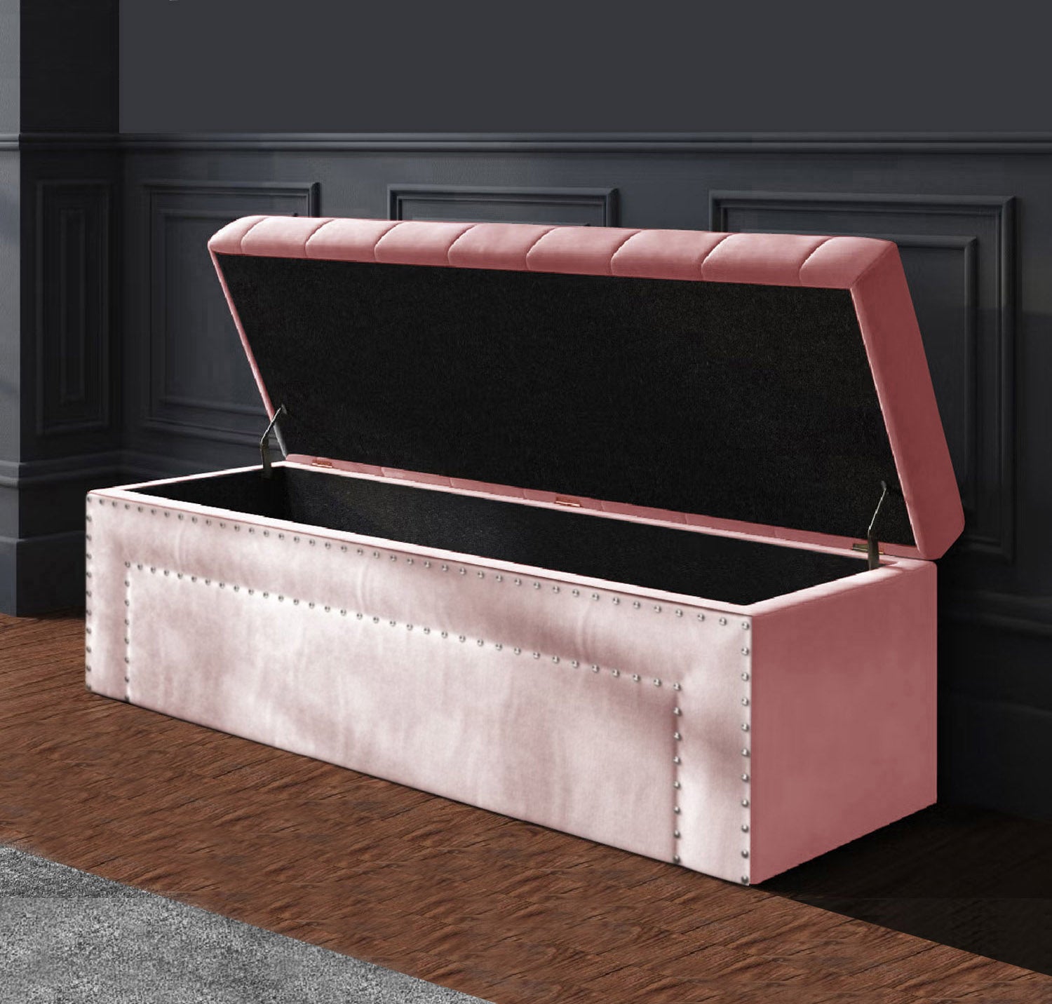 Our Velvet Ottoman bench with storage is a luxurious and elegant piece of furniture that combines the comfort of an Ottoman with the practicality of hidden storage space. The bench is upholstered in soft velvet fabric, which adds a touch of sophistication to any room.