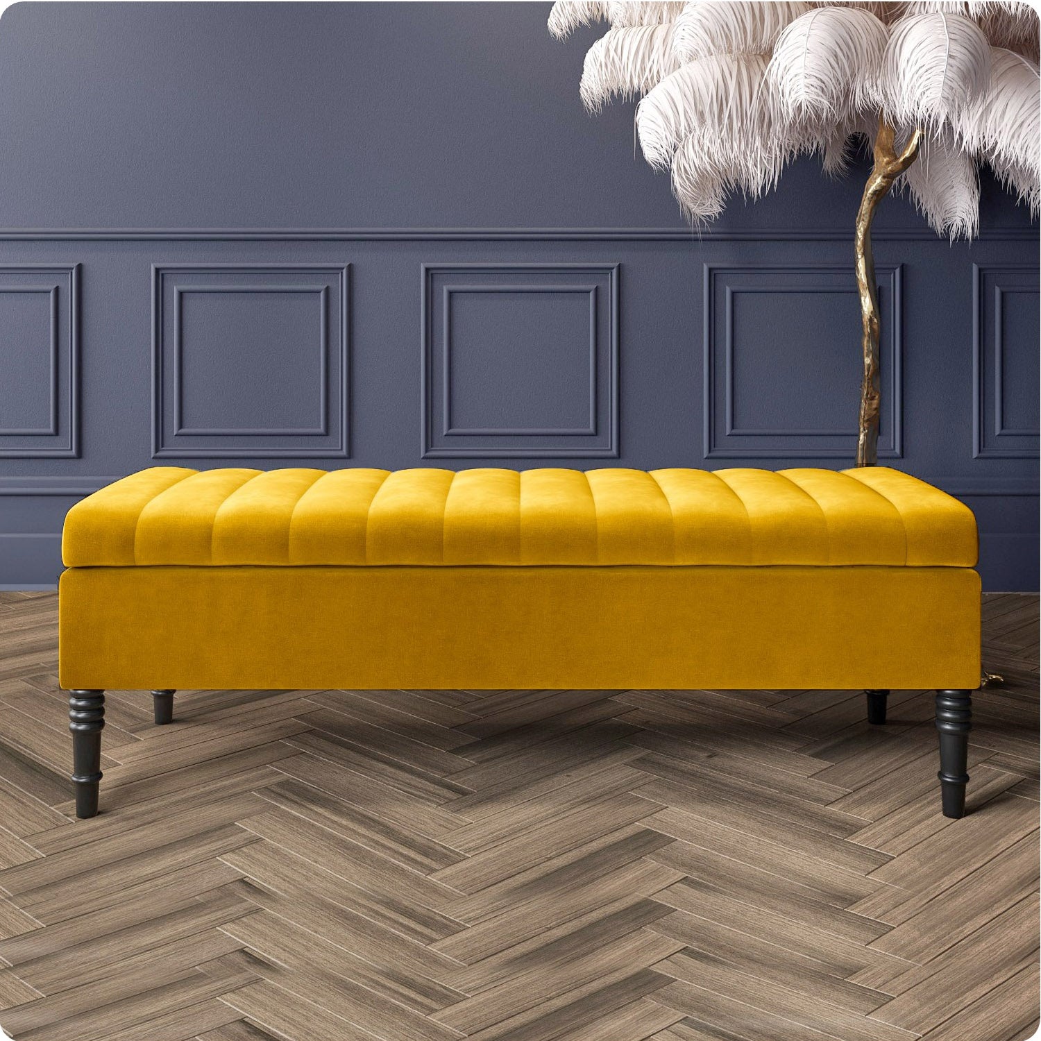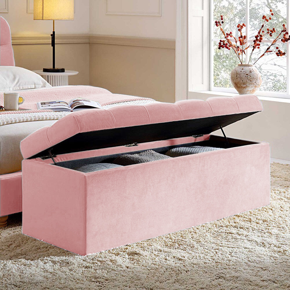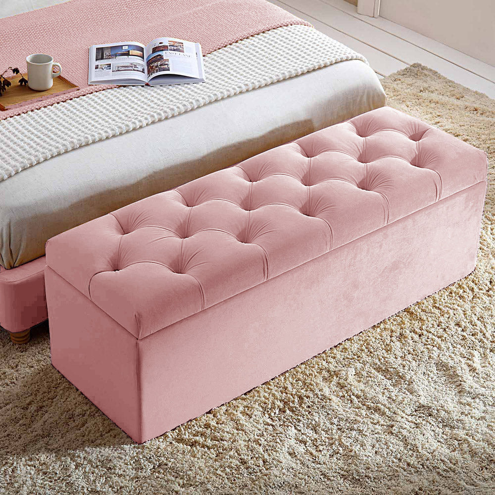 Versatility: The velvet Ottoman bench can be used in various rooms, such as the living room, bedroom, or dressing area, where it serves as both seating and storage.